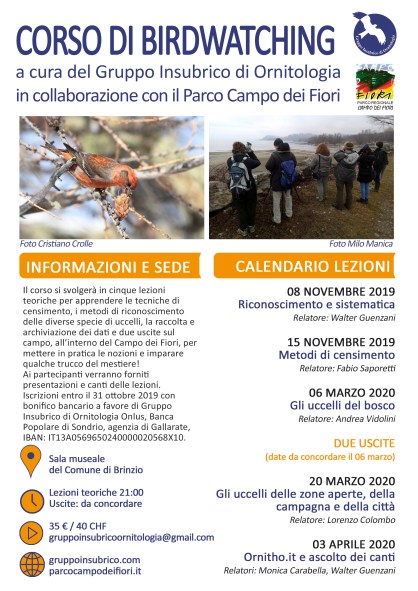 CORSO DI BIRDWATCHING a cura del Gruppo Insubrico di Ornitologia in collaborazione con il Parco Campo dei Fiori